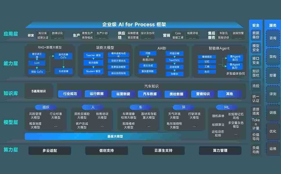 端到端的一站式AI工作空间深度融合了从企业战略规划到日常经营的全流程业务板块,,,定向解决车企内部领域多、、部门多、、、、链条长、、场景碎片化等难题,,,,支持车企快速构建以AI为核心的生产力写作体系,,,,实现任务执行与AI能力的无缝集成与交互